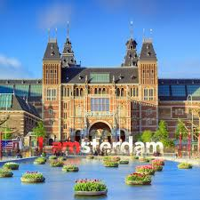 - Continue straight, crossing the canals, until you reach the large open area of the Museumplein.