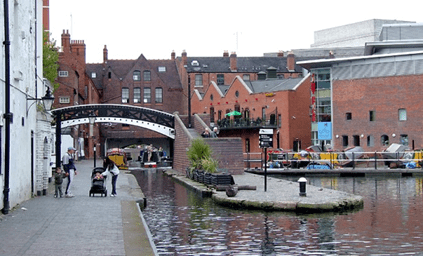 Today, the bars and restaurants of Brindley Place cluster around this attractive basin where traditional narrowboats and industrial heritage meets modern, cosmopolitan living.